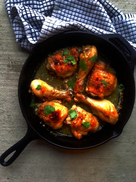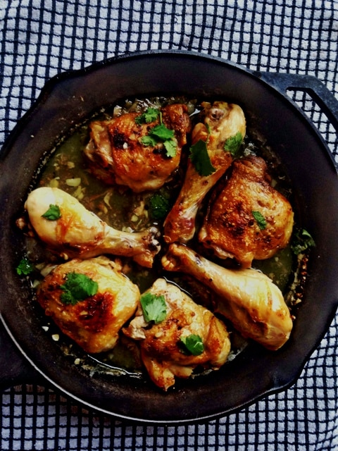 - 1 lb. chicken thighs or drumsticks, or a mix (usually about 4 thighs and 2 or 3 chicken drumsticks fit in my cast iron)